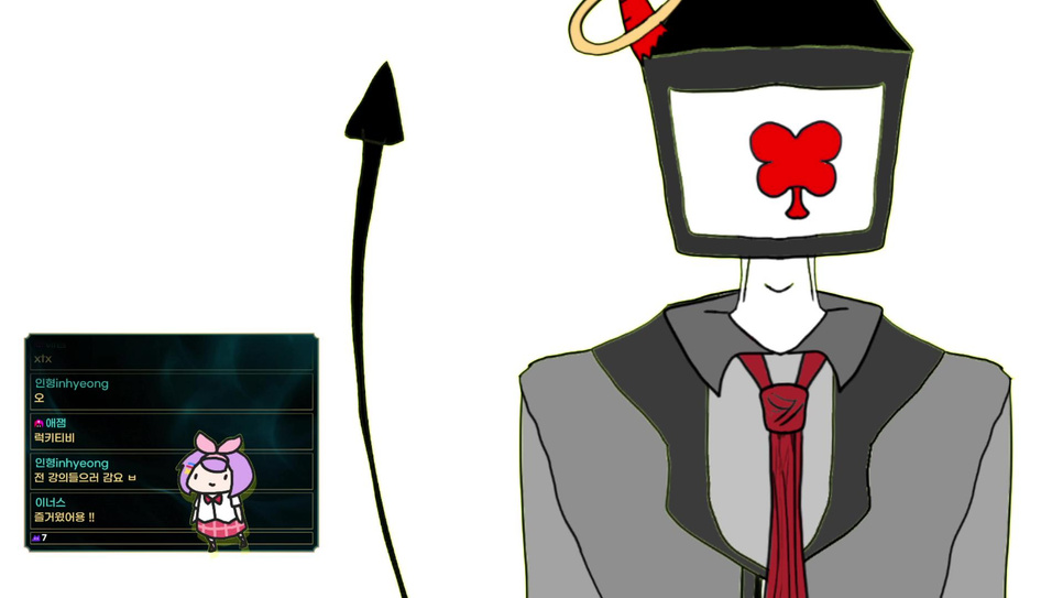 ※채팅 규칙※ 1. 시청자끼리 닉 언급, 친목 금지 - 뿔로 찌를 겁니다.(?) 2. 욕, 패드립 금지 - 진짜 뿔로 찌른 다음 던집니다.(?) 3. 취미 방송 입니다. - 방송 똑 바로 해라, 그럴거면 방송하지 말아라 같은 아저씨 훈수 하시면 취미의 뜻을 모르시는 줄 알고 집중적 취미 뜻 설교 들어갑니다.(?) - 3번 규칙은 취미 방송이니까 훈수 금지라는 뜻입니다. (이렇게 까지 써뒀는데 이해 못 하고 훈수 하시면 진짜 뿔로 박습니다..) 4. 시청자끼리 싸움 금지. - 사이좋게 어퍼컷 맞기 싫으면 하지 마세요.(?) 5. 모든 것은 애잼의 판단. - 규칙 안 지키면 바로 그냥 뿔로 들이박겠습니다.(?) 사이좋게 규칙 지키면서 재밌게 놉시다. 혹시 모르니 규칙 적어둡니다.